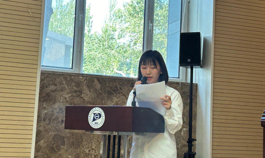 力学20-2班的刘博杰和信计20-1班的白桐菲分别作为党员宿舍学生代表和党员学生代表进行发言,倡议全体学生党员要勇于亮身份做表率,用实际行动践行党员的使命和责任,充分发挥党员的先锋模范作用,用青春风采为党旗争光添彩。