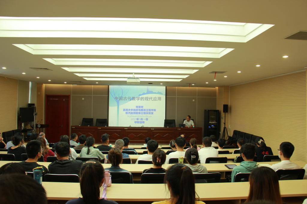 为加强学术交流,助力人才培养、学科建设,9月16日上午,学院邀请了苏州大学二级教授、博士生导师何吉欢,在学校明德楼第二报告厅作题为“中国古代数学的现代应用”报告。报告由副院长陈小刚主持。