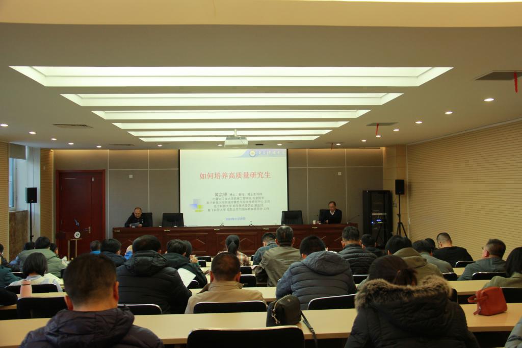 为进一步提升学院研究生培养质量,并尽早开展2024年国家自然科学基金项目申报工作,11月9日下午在明德楼第三报告厅,yl23455永利集团联合航空学院举办《植霖讲堂》第一百六十二讲,邀请国家杰出青年科学基金B类获得者、教育部高等学校机械类教学指导委员会委员、电子科技大学国际合作与国际教育委员会主任黄洪钟教授作题为“如何培养高质量研究生和撰写国家自然科学基金申报书的若干建议”的专题报告。学院50余位教师参加报告会。