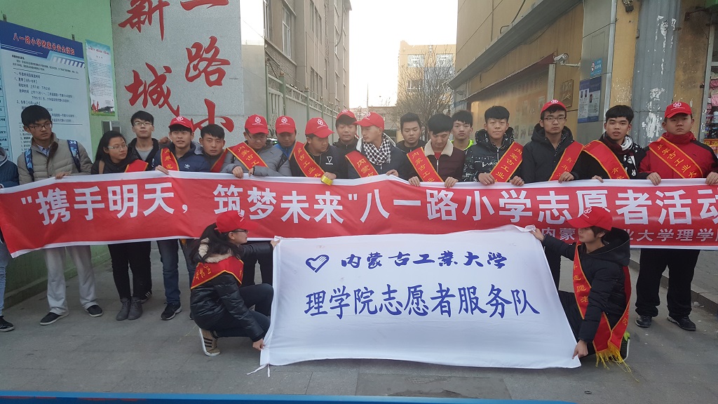 2006年八一路小学成为了我院“青年志愿者服务基地”,对八一路小学的义务支教,一直以来都是我院志愿者工作的重要方面之一。我院多年来的坚持也取得了良好的社会效果和来自各个方面的赞许与认可。志愿服务是一项高尚的事业,志愿者所体现和倡导的“奉献、友爱、互助、进步”的精神是中华民族传统美德,相信理院学子今后将更加努力的进行志愿服务。