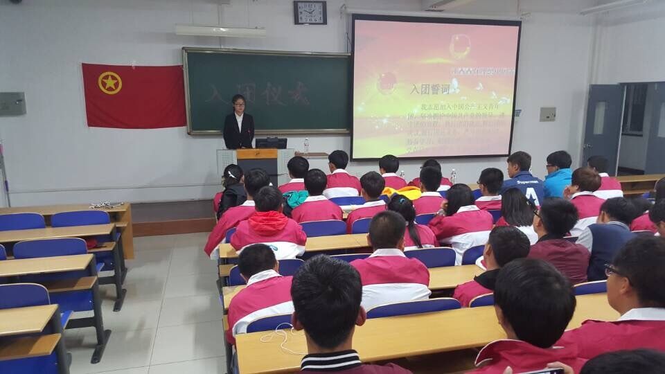 本次入团仪式分为三项内容。第一项奏唱团歌;第二项入团宣誓,由老团员代表带领本次入团的同学进行宣誓,在场老团员共同重温了入团誓词;第三项新、老团员代表进行发言。