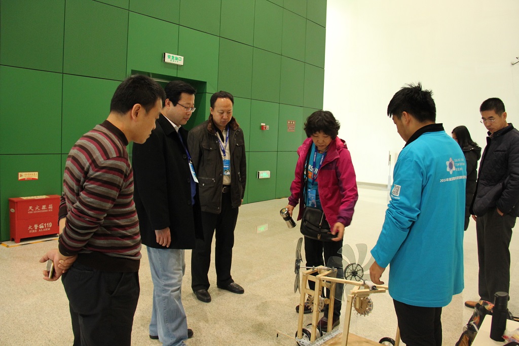 “能源利用”命题较复赛来说增加了风源数量,改变了风源角度,使环境更加接近自然风的状态,同时增加了负重量,选手们需要在两台成一定角度和距离的风机提供的逆风状态下完成60公斤前行的任务这一命题更加体现了“创新、环保、健康”的主旨,使更多的青年学子意识到绿色能源、清洁能源的开发和利用。最终,我校学生以全国第二名的成绩完成了本次比赛。