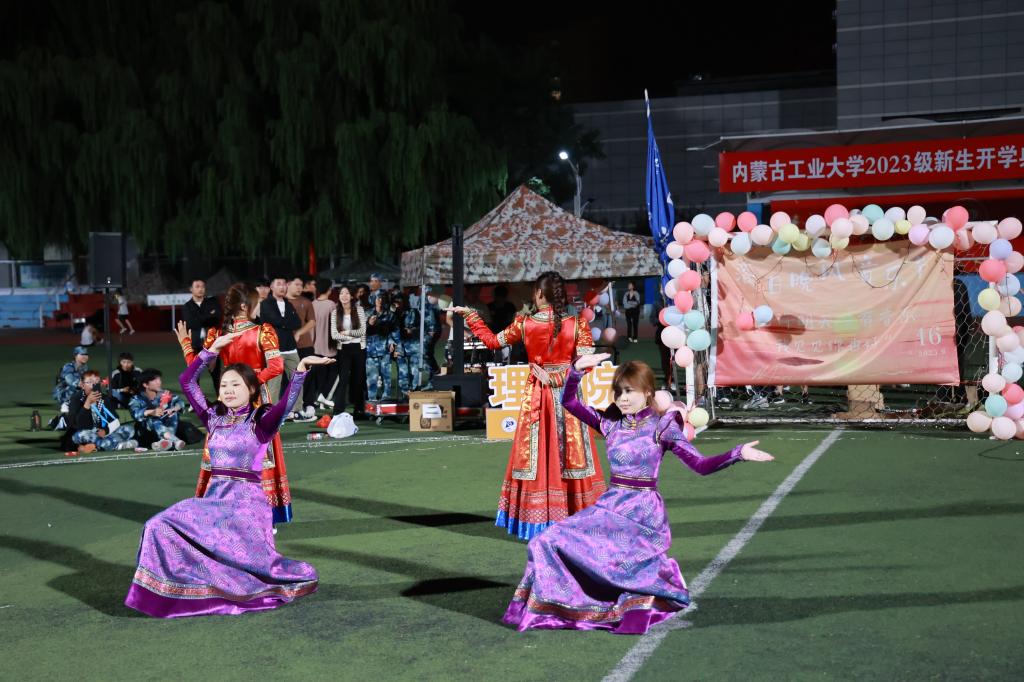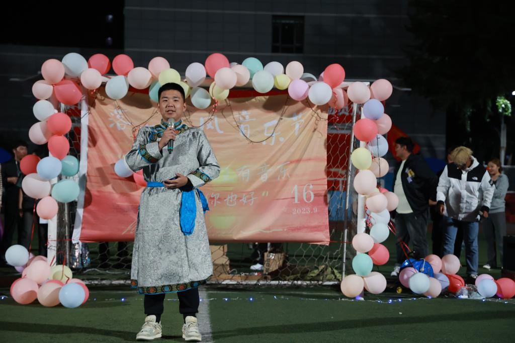 晚会在歌曲合唱《日不落》中拉开序幕,蒙古语歌曲《姑娘在远方》《有缘相爱》《一天》、汉语歌曲《你从未离去》《爱阔天空》、蒙古族舞蹈《迁徙》、汉族舞蹈《罗敷行》马头琴演奏《黑幕日》、吉他弹唱《会不会》等极具民族特色的节目,将晚会的氛围拉满,台上演员激情表演,精彩纷呈,台下观众掌声阵阵,晚会现场气氛热烈。现场布置得温馨且浪漫,同学们挥舞手中的闪光灯,热情高涨,灯光温柔地照耀着现场,氛围感满满。晚会最后在全体演员和观众合唱《相亲相爱》中落幕。