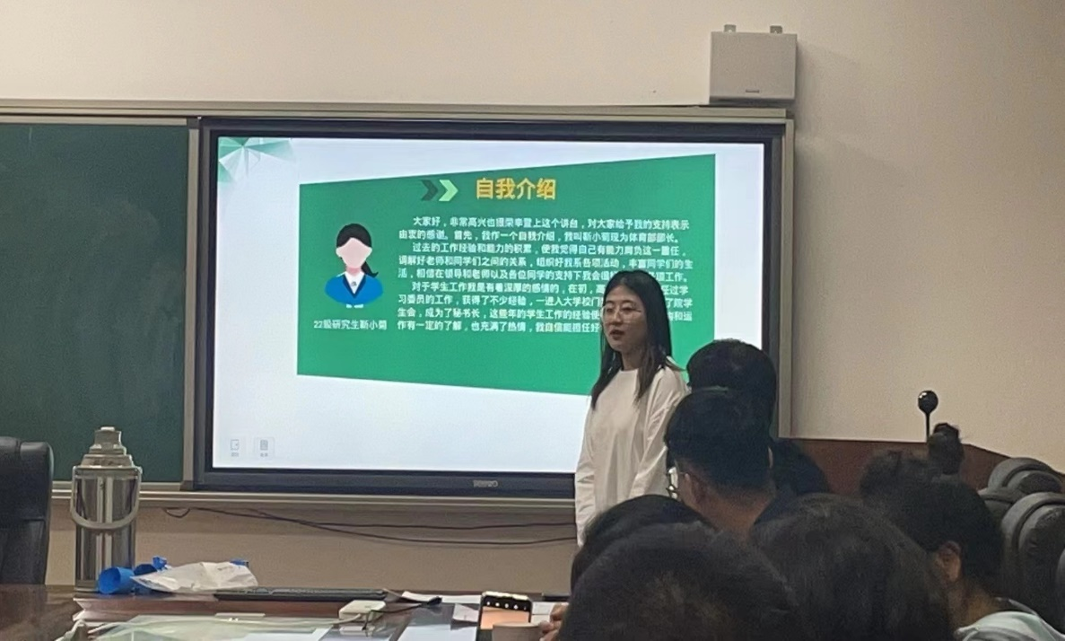 上一届研学会主席李岱洲作述职报告,研学会与各博硕班级紧密合作、共同策划和组织迎新、志愿服务、实验室安全卫生大检查等重要活动圆满完成。