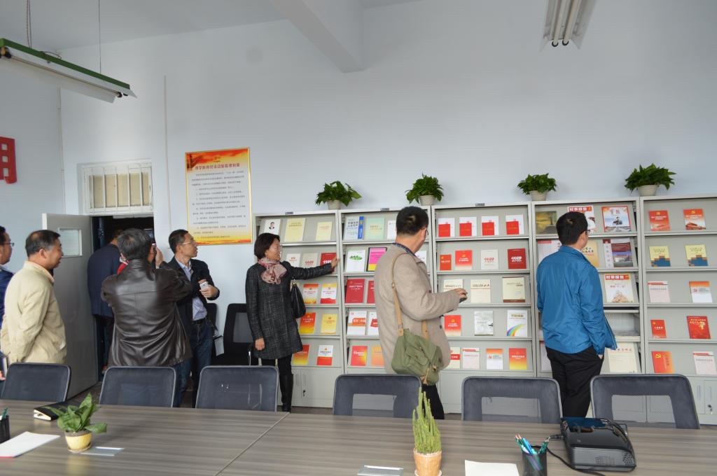 在党员活动室,大家听取曙光书记对学院创建党员活动室的工作要求和工作思路、上墙内容、基本设施、管理制度、党建丛书等内容。