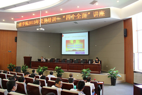 为了提升学院党员理论水平,认真学习“四个全面”战略布局,按照学校党委要求,7月3日,yl23455永利集团党委举行2015年党员培训。邀请马克思主义学院王永顺教授做题为“‘四个全面’:引领实现中国梦的战略布局”专题讲座。院长庞晶、副院长李海滨,教工党员、学生党员、入党积极分子和部分学生代表聆听了讲座。院党委副书记、副院长赵星主持。