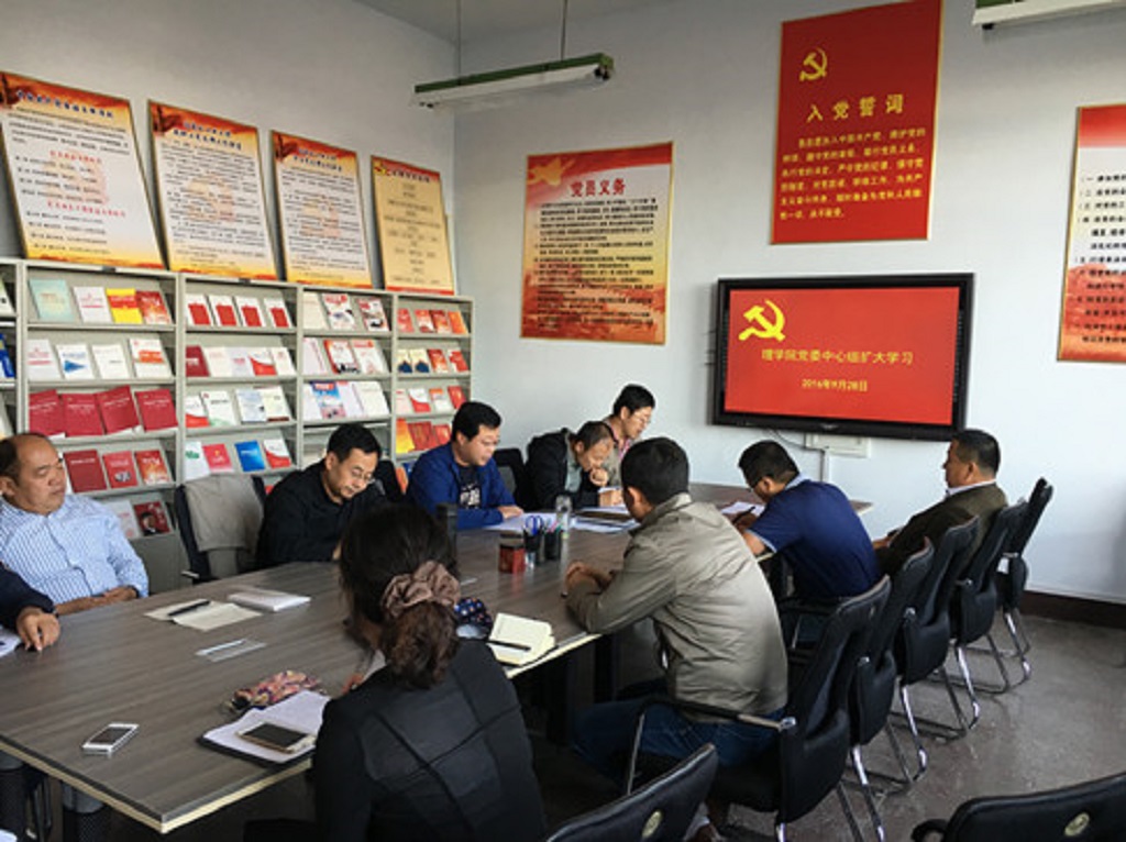 9月28日下午,yl23455永利集团党委在党员活动室召开了党委中心组(扩大)学习会议,认真学习贯彻习近平总书记“七一”重要讲话精神,和学校近期印发的若干文件。全体院领导、党委委员、各支部书记参加了会议。会议由yl23455永利集团党委书记曙光主持。
