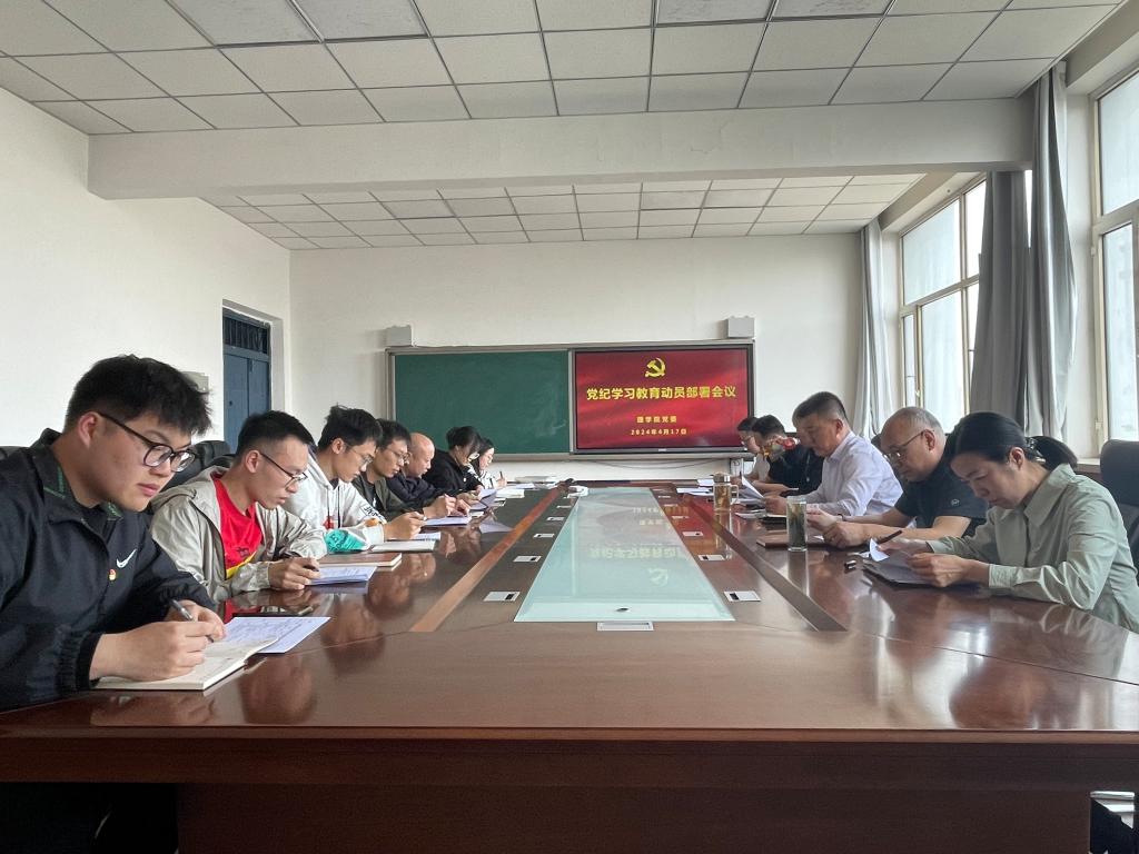 会议强调,开展党纪学习教育是党的政治生活中的一件大事,非常及时、十分必要。学院党委要围绕深入学习贯彻习近平总书记关于党纪学习教育的重要讲话和重要指示精神,强化组织领导,抓好督促落实,务求学习教育取得实效。要着重在两个方面下功夫:一是组织全院师生党员原原本本、逐章逐条学好《条例》;二是抓好警示教育。要将开展党纪学习教育与巩固拓展主题教育成果有机衔接,与落实党中央重大决策部署紧密结合;与落实学校十届一次教代会报告任务紧密结合,两手抓、两促进,使党纪学习教育措施成为促进中心工作的有效举措,使党纪学习教育成效切实转化为学院高质量发展成果。