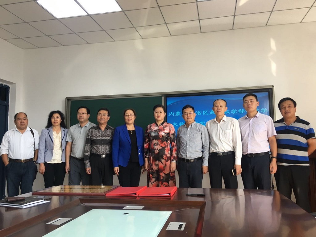 9月25日下午,yl23455永利集团与北京蓝墨云教学大数据研究院签约成立“内蒙古自治区高校数学移动云教学大数据研究中心”。北京蓝墨云教学大数据研究院院长商桑,我校教务处处长李春萍、马克思主义学院党总支书记李慧、yl23455永利集团领导班子、各系部中心主任参加。