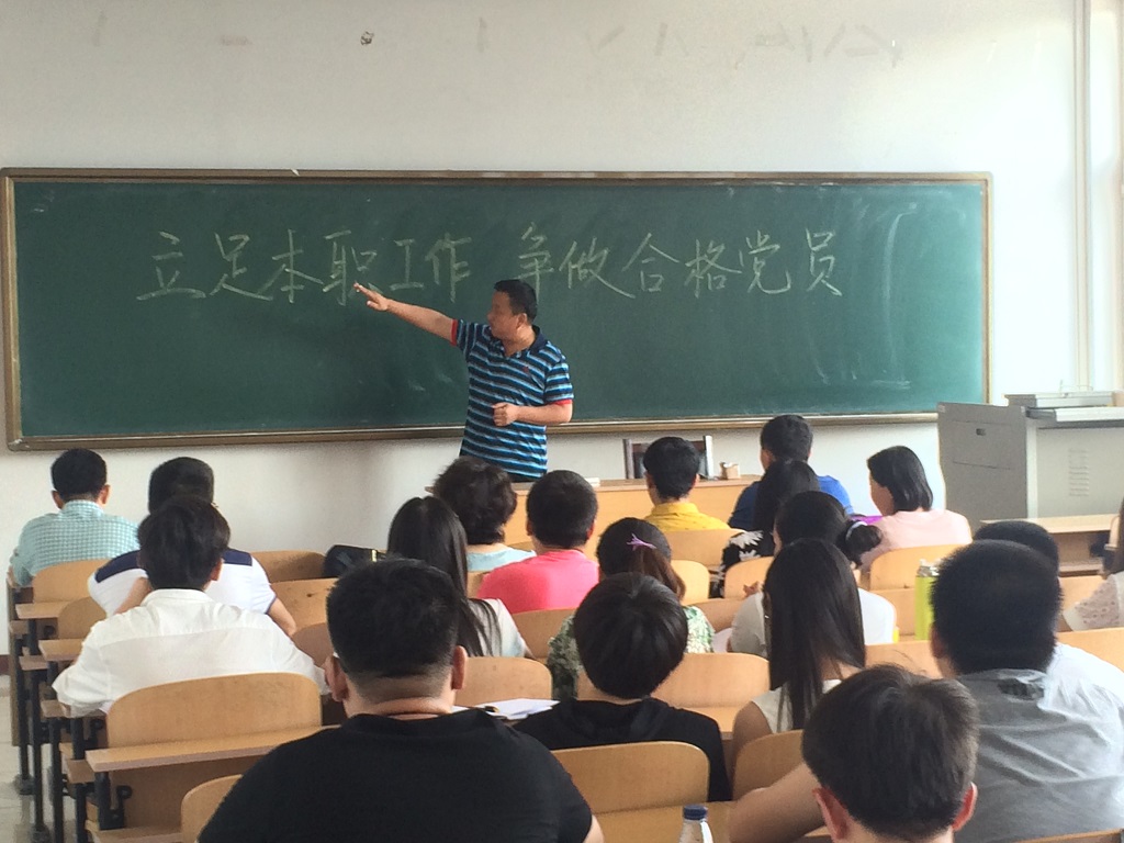 崔老师对新党员加入党组织表示热烈的欢迎。他以“立足本职工作,争做合格党员”为题展开,要求所有老师和新党员首先要把本职工作做好,牢记党的宗旨,加强党性锻炼,充分发挥党员的先锋模范作用,其次要增强政治意识、大局意识、核心意识、看齐意识,在今后的学习和工作中不忘初心、坚定信念,为学院各项事业发展做出应有的贡献。新党员代表韩冰表达了加入党组织后的决心和今后努力方向。