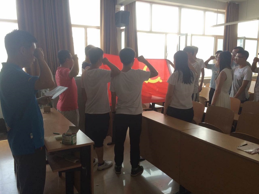 七一前夕,yl23455永利集团党委组织学生党员举行2017年上半年新党员入党宣誓仪式。学院党委委员、组织员崔径汉,学院团委书记、研究生党支部书记董元老师以及新发展的15位学生党员参加宣誓仪式。