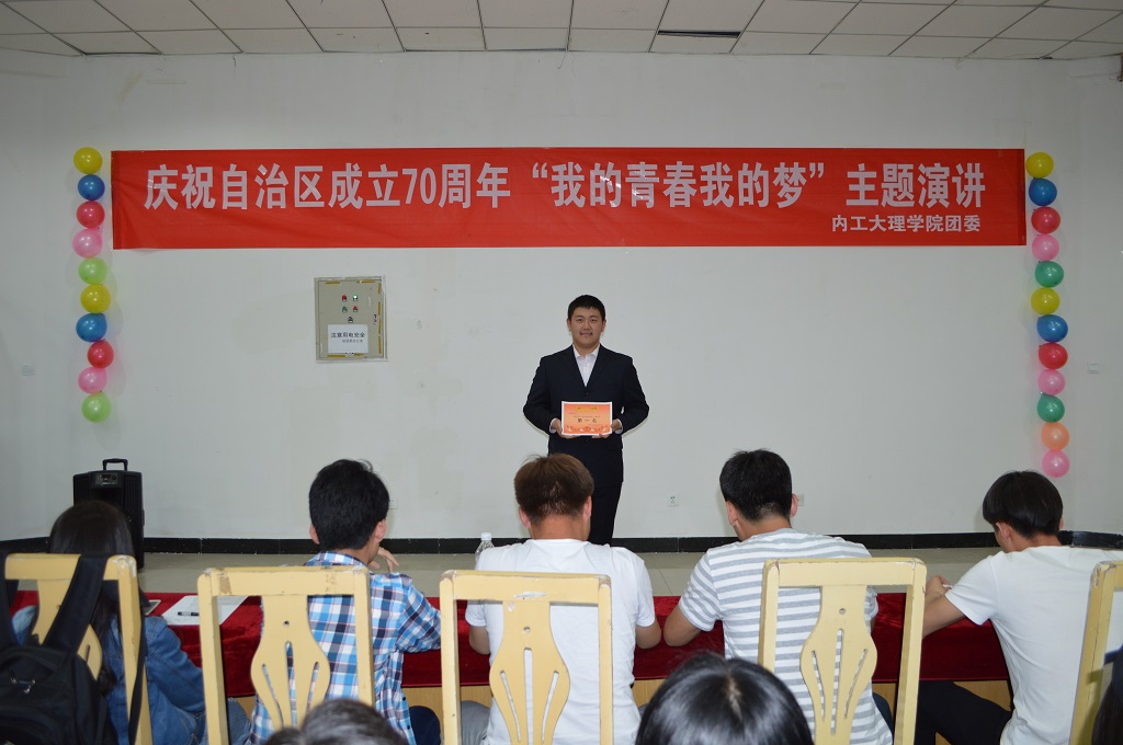 为深入贯彻“一学一做”教育实践,培育和践行社会主义核心价值观,大力弘扬中华优秀传统文化,大力弘扬伟爱国主义精神,引导广大青年学子树立正确的世界观、价值观、人生观,在内蒙古自治区成立七十周年之际,yl23455永利集团于2017年5月10日在金川校区教E举办庆祝自治区成立70周年“我的青春我的梦”主题演讲比赛。