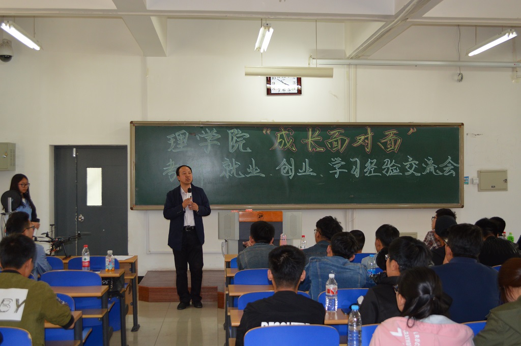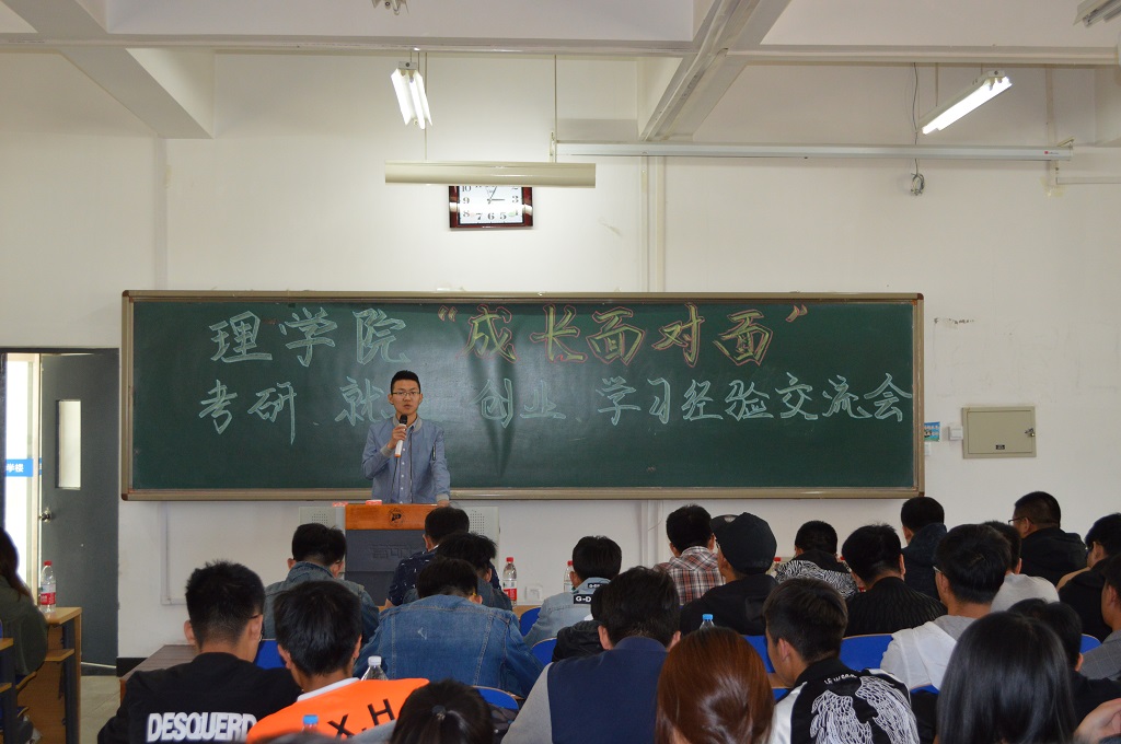 2017届即将踏出校园的毕业生代表赵磊、卢嵘峰、李俊凯、周思彤、王波、程瑾、张国帅、刘连补八位同学分别从就业、考研、创业三方面介绍了自己的学习、成长经验。他们在校期间勤奋学习、积极向上,在同学当中具有典型性和代表性,而且绝大多数都是学生党员。交流中他们对低年级同学们提出的很多关系切身实际的问题一一作了解答。