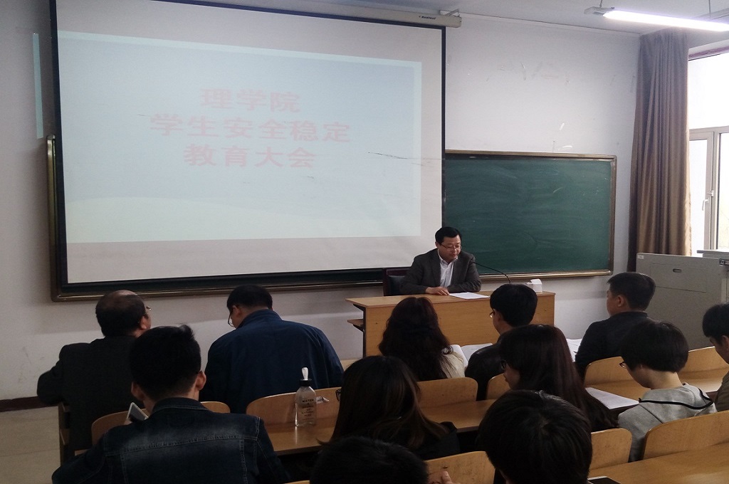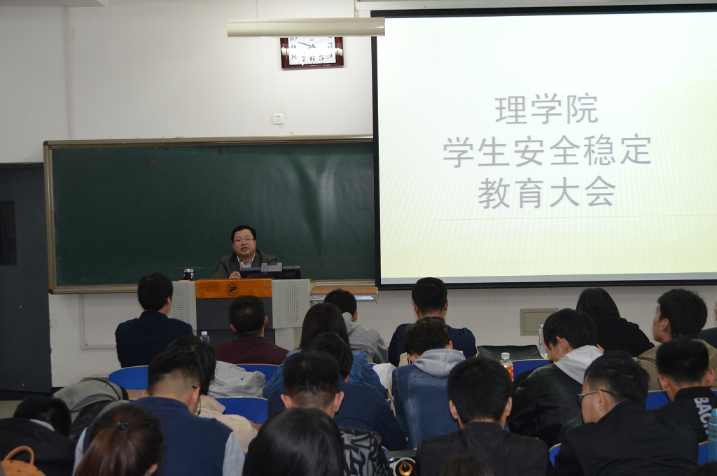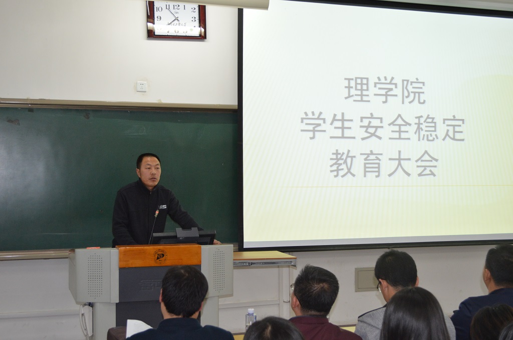 为进一步落实学校安全稳定工作会议精神和相关工作部署,4月10日晚上在金川A辅201和4月13日晚上在实验楼401,yl23455永利集团召开2017年度学生安全稳定工作会议。学院党委书记曙光主持会议,院党委书记曙光、团委书记董元、学工办主任陈玉宝、就业办主任付磊、学院辅导员张伟光以及各班班主任、大一至大四各班级学生干部、学生党支部书记以及部分普通同学440余人参加会议。