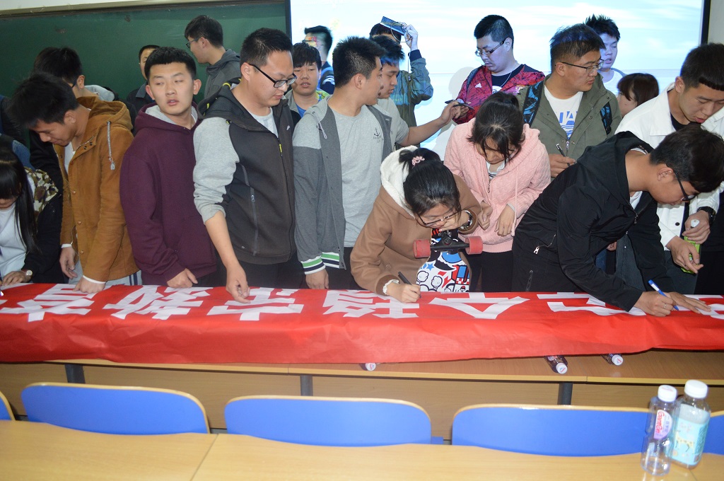 会上,曙光书记传达了3月24日学校安全稳定工作会议精神及工作部署,要求学院教学、学生管理部门要狠抓学生管理教育,防微杜渐,切实把安全教育落实到每位学生,并从校规校纪的执行落实、宿舍防火防盗安全、心理健康教育、网络信息安全教育、毕业生就业安全等方面展开讲解。对学生安全管理工作进行了进一步的部署和安排,要求班主任辅导员、学生管理部门增强安全意识,随时关注学生思想动态,确保学院安全稳定。要求学生干部主动增强安全意识,敢于担当,敏于观察,尽职尽责。学工办主任陈玉宝以日常管理服务、安全意识、事故案例等方面进行分析,希望同学们加强凝聚力,积极面对、积极奋斗。会后,同学们共同在活动条幅上签名。
