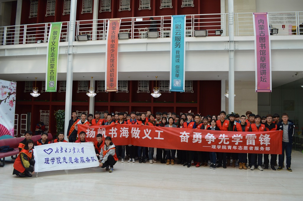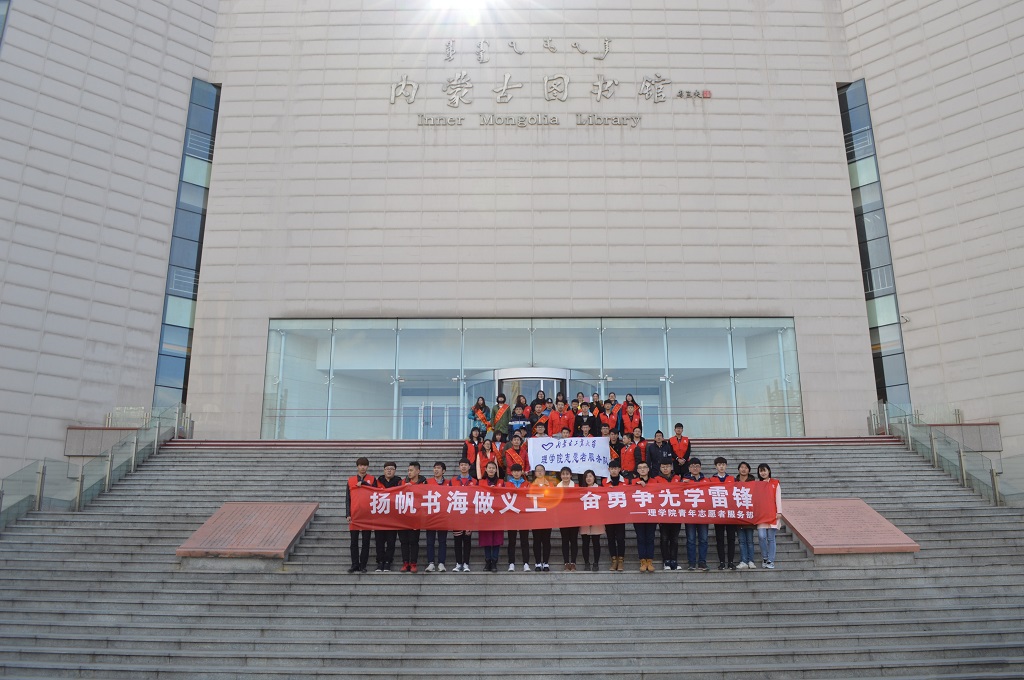 为深入开展团中央“学习习近平总书记讲话,做合格共青团员”教育实践和贯彻全国、全区高校思想政治工作会议精神,落实立德树人根本任务,引导广大团员青年大力学习和弘扬雷锋精神,践行社会主义核心价值观,继续传承,发扬雷锋精神 ,让雷锋精神与时代同行。特此yl23455永利集团青年志愿者协会在3月5日雷锋纪念日当天来到内蒙古图书馆为入馆的读者们提供服务,同时清洁馆内环境,竭力为大家创造一个良好的读书氛围。