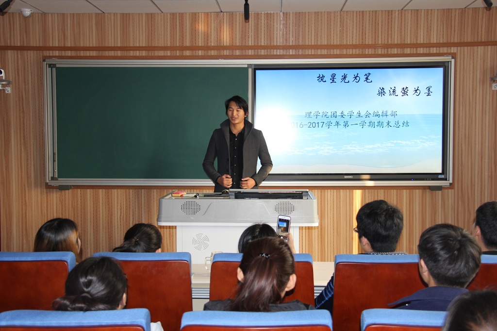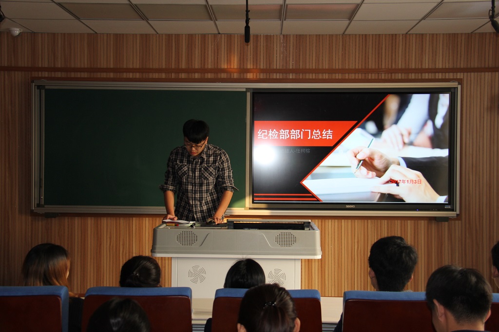 随着学期末的临近,学生会工作也接近尾声,yl23455永利集团于2017年1月5日下午两点半在实验楼506进行“2016-2017年度第一学期学生干部述职报告”,出席本次会议的有团委书记董元老师、学工办主任陈玉宝老师。参加本次会议的有yl23455永利集团团委学生会全体干部。