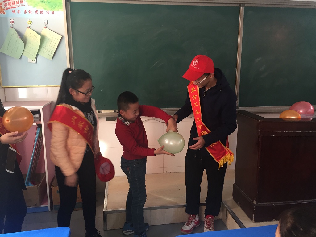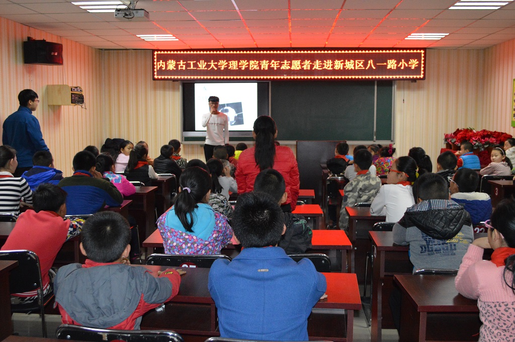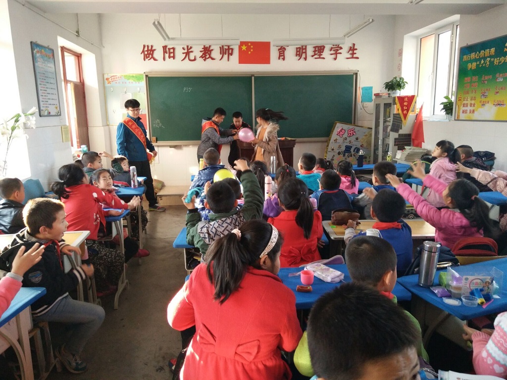 活动当天所有支教人员准时到达八一路小学,以饱满的热情投入到志愿者工作中。在教室中,志愿者们为孩子们做着有趣的物理实验,一个个实验现象对于孩子们都是“不可思议”的。面对着孩子们真诚笑脸,所有志愿者都尽心尽力的将自己所知道的知识传授给学生们。在营造了一个欢快活泼的课堂气氛同时也让孩子们更好的学习知识。此外,志愿者们还精心准备了科普知识抢答的游戏环节,充分调动了孩子们的积极性,气氛达到至高点。紧接着所有志愿者集体为学生们做“感恩”主题演讲,教导孩子们懂得感恩,学会感恩,感恩从小做起!演讲结束后,孩子们纷纷找志愿者们合影,以此来留作纪念。