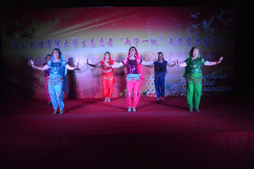 2016年7月6日,yl23455永利集团大学生志愿者暑期三下乡实践服务团走进呼和浩特市赛罕区大学东路街道办事处望兴园社区,开展第八届校园文化进社区暨庆祝建党95周年消夏文艺晚会,yl23455永利集团党委副书记、副院长赵星,团委书记董元、学工办主任陈玉宝,以及大学东路街道办事处相关领导受邀出席了本次活动。