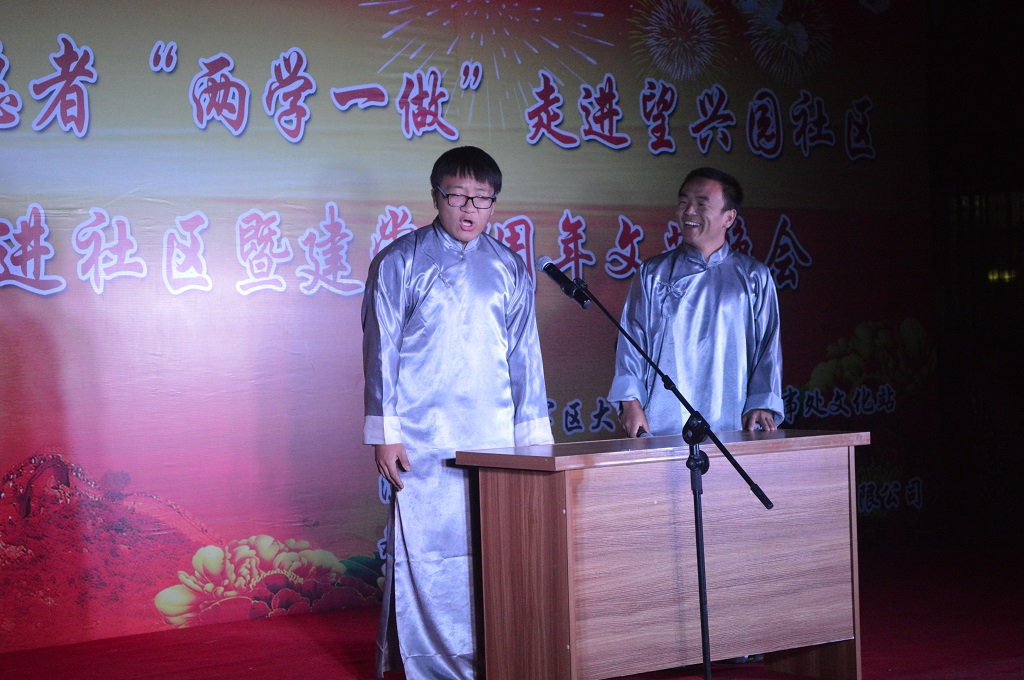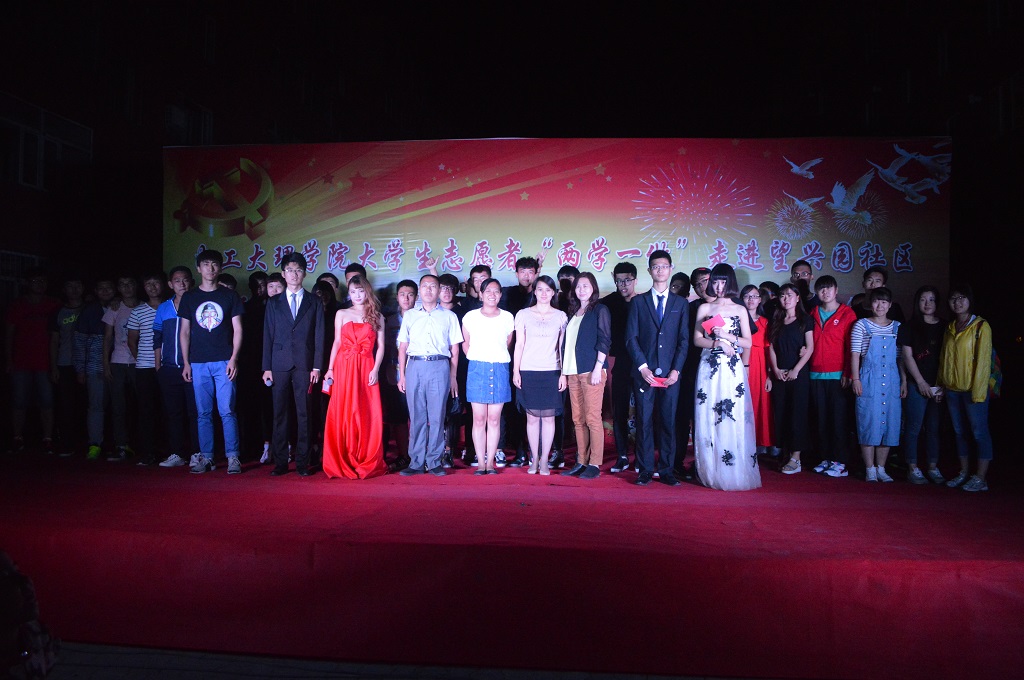 望兴园社区消夏文艺晚会,是yl23455永利集团暑期“三下乡”社会实践活动的一个重要组成部分,也是志愿者积极将校园文化带到基层社区的重要举措,从2009年到现在已经连续举办了八届。按照学院党委“两学一做”实施方案要求,今年暑期“三下乡”学院团委成立了“两学一做”实践服务团,负责晚会的筹备演出,服务团骨干成员均来自学生党支部党员、入党积极分子和提交入党申请书的共青团员。旨在通过服务社会的实践教育,引导党员立足岗位做贡献。