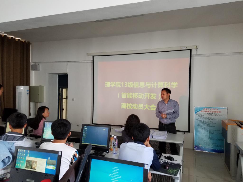 6月15日,yl23455永利集团举行2013级信息与计算科学专业(智能移动开发方向)离校动员大会,yl23455永利集团院长、校企合作工作小组组长庞晶,副书记、副组长赵星及企业驻校区辅导员、数学系、教务中心等老师和信计专业2013级2个班全体学生参加大会。