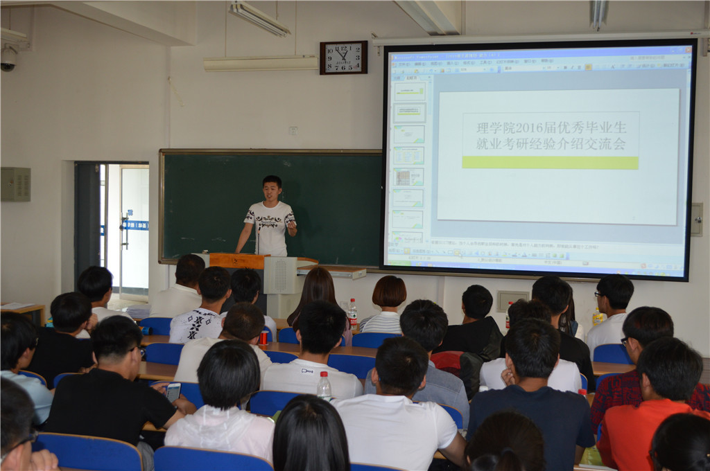 学院团委邀请了2016届优秀毕业生代表李智、任晓旭、衡忠超和王耀四位同学与低年级同学交流、分享经验。四位同学分别从就业、保研、考研等方面介绍了自己的学习、成长经验。