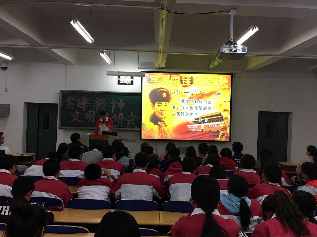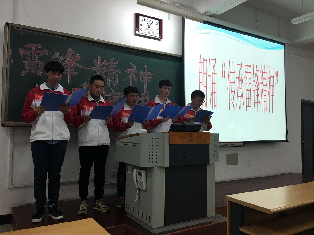 活动中,首先观看了雷锋生平简介的视频,之后同学们又一起学习了《雷锋日记》中的部分章节,并列举了当今社会中为他人无私奉献的爱心人士的事迹,引导同学们学习他们乐于助人的品质。期间还穿插了诗朗诵《传承雷锋精神》等作品。活动最后进行了“我为雷锋来点赞”照片征集活动的颁奖仪式,获奖人员为大一的三位同学。