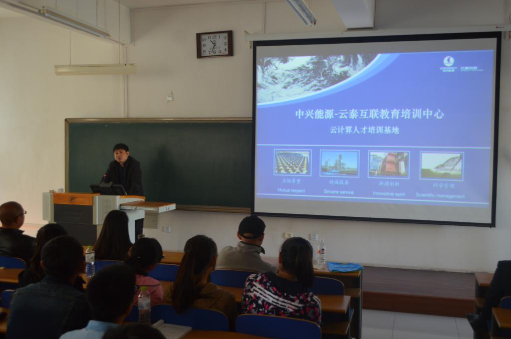 10月10日上午,yl23455永利集团与中兴能源鄂尔多斯市云泰互联科技有限公司举行了校企合作办学信息与计算科学专业2015级新生入学教育。中兴能源IDC事业部教育培训中心合作拓展部部长史春涛,教学培训部部长张然博士。学院党委副书记、副院长赵星、数学系主任宋健、副主任赖俊峰及信息与计算科学(云计算大数据分析方向)专业的2015级新生参加了入学教育。仪式由就业办主任付磊主持。