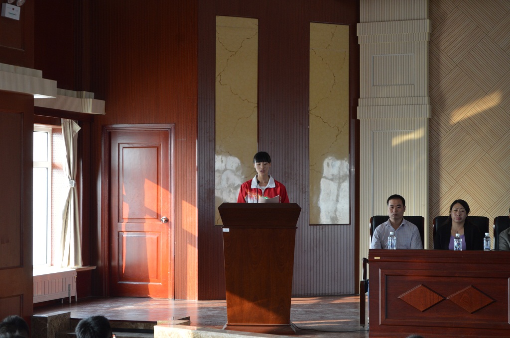 学工办主任、新生班主任陈玉宝代表教师发言,在校生代表佟玲、新生代表倪杨分别发言。