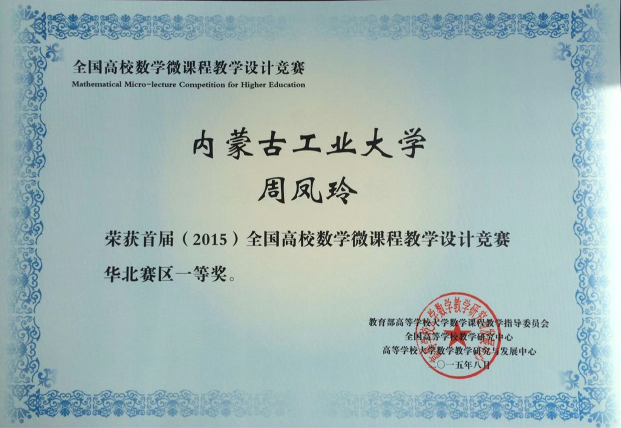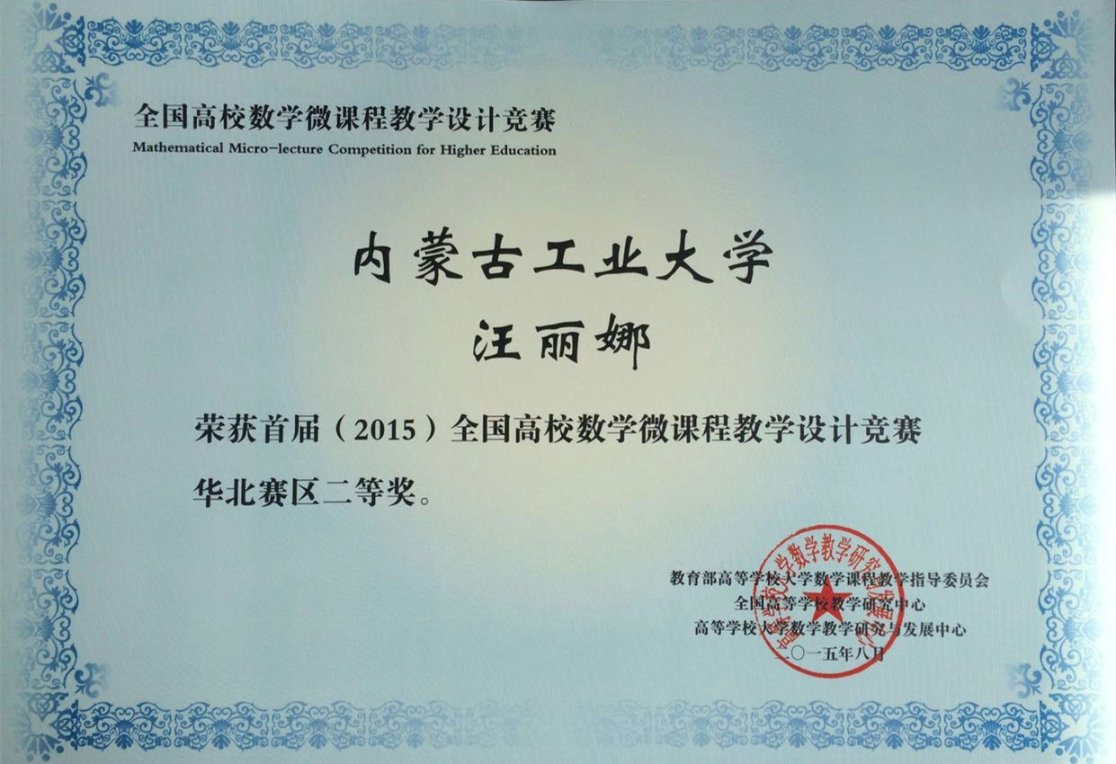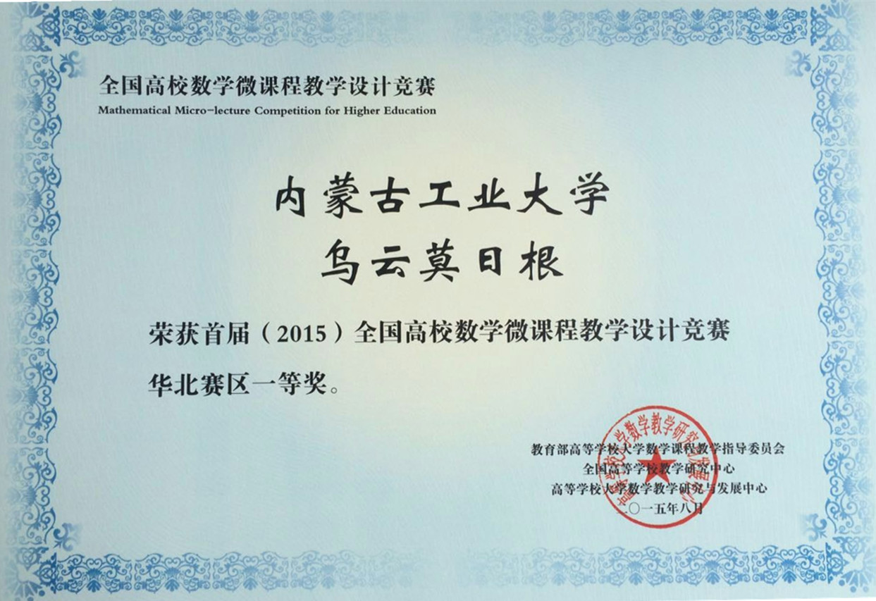 日前,首届全国高校数学微课程教学设计竞赛结果公布,我院教师乌云莫日根、周凤玲获华北赛区一等奖,汪丽娜获华北赛区二等奖。