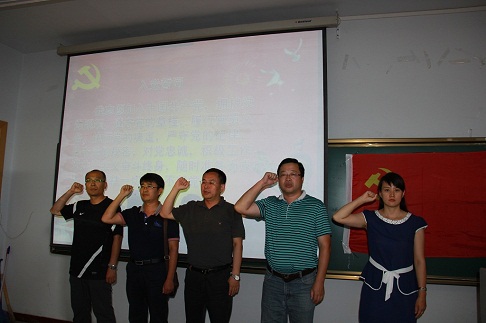 本科生党支部于7月1日下午进行了集体学习。通过重点对党的性质宗旨、组织制度、作风纪律的学习。表示要努力将党章内化于心、外化于行。学习结束后,学院党委上半年审批通过的14名新党员进行了庄严宣誓,学院党委委员为新党员颁发了党章,老党员一同重温了入党誓词。