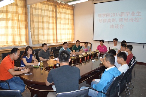 学工部门于7月1日上午举办“珍惜离别,感恩母校”2015届毕业生文明离校活动。学院班子全体成员出席,院相关部门负责人及2015届各班毕业生和党员代表参加座谈会。与会同学畅所欲言,他们回顾了大学四年的学习、工作和生活,就考研、就业、创业等方面积累的经验做了充分交流。部分同学还就学科设置、课程安排、学生管理等方面学院领导进行深入探讨。学院领导分别对同学们顺利完成学业表示祝贺,感谢他们对学校学院的关心。同时,祝愿他们前程似锦,大有作为;永远心系母校,常回家看看。