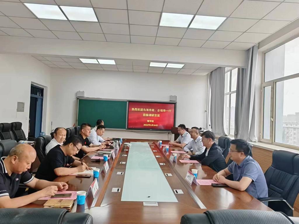 5月24日,乌海市高新技术产业开发区管委会副主任云昆仑、乌海市人民政府办公室秘书五科负责人哈申一行四人到校与我院开展校政企合作交流。